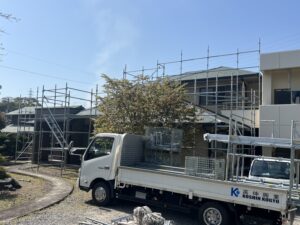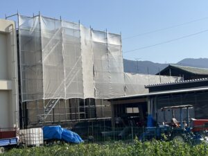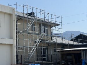本日は【四国中央市】にて塗装用足場の組み立てをしました!!